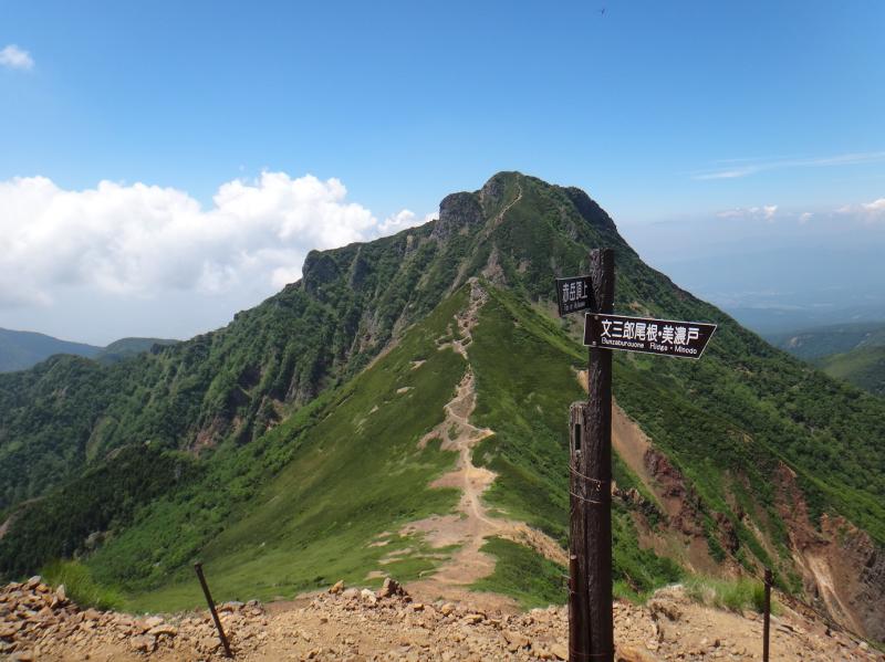 今月もクラブ山行の第2日曜が悪天候で計画していた八ヶ岳が流れた。連日の猛暑日と熱帯夜、浅い眠りに溜まった疲れを背負って山に登るのは本当にご苦労な事だ。予定より一時間遅れの5時に出発、出来るだけ涼しいコースを優先して八ヶ岳の表玄関になる美濃戸から何度も通った南沢(前回2013.9.22)を登り行者小屋を目指す。5年の間に随分と整備が進み増水時に幾つか有った渡渉箇所は全て鉄製の橋が架けられ遊歩道のようだ。それに沢沿いの天然クーラーは快適だし平日だから静かで気分も最高だ。予定10分前に行者小屋着、体調は普通、天気も問題ないから阿弥陀から登って中岳経由で主峰の赤岳に立ち地蔵尾根を下って帰りは北沢を回ろう。阿弥陀(前回2010.09.12)8年ぶり、八ヶ岳の一般ルートの中で難易度一番と思う。地質の違いか玉ねぎの皮が剥けるようにボロボロに風化した岩、赤岳の県界尾根と同様に浮石が多く落石のリスクが極めて高い。それに今日は岩が熱く素手で攀じたかったが皮手袋をはめる。誰も居ない山頂で小休止、権現も赤岳も山梨側に雲が掛かるが長野側は青空が広がり抜群の高度感を味わう。当たり前だが稜線上に日陰はない。風も吹かないから暑い。水の消費も早い。中岳で昼食中に雄大積雲が立ち昇り、1時間遅れの出発を悔やみ文三郎分岐(写真)で下山の判断とした。※阿弥陀はコルからほぼ直登なので下山者がいる場合は安全な場所で待機した方が良い。