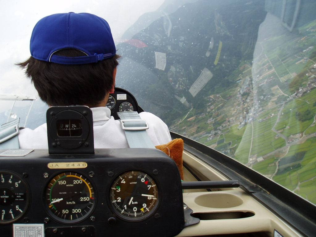 「夏は何処へ」不順な天候で飛べない日が続き前回のフライトから4週間が経過してしまった。実は自家用パイロットには飛行の安全確保の観点から「180日以内に同じ種類の航空機による3回以上の離着陸経験」が義務付けられている。FLIGHT LOG(飛行日誌)を調べると、グライダーは2月~7月の6ヶ月間で、6回しか飛んでいない、条件は満たしているが自分としては不満だ。今日も予報より崩れが早く、昼前から雨も降り始める荒れたコンディションで半日で撤収になる。そんな中、短いフライトだが2回の飛行経歴ができた。写真は、韮崎の訓練空域(正面が甘利山方面)、対地高度460mで右旋回中の複座グライダー後席から撮影。対気速度は100km/h、流線型のキャノピー(風防)に当たる雨滴は瞬時に後方に弾け飛んでしまう。韮崎10:25~韮崎10:42 0+17