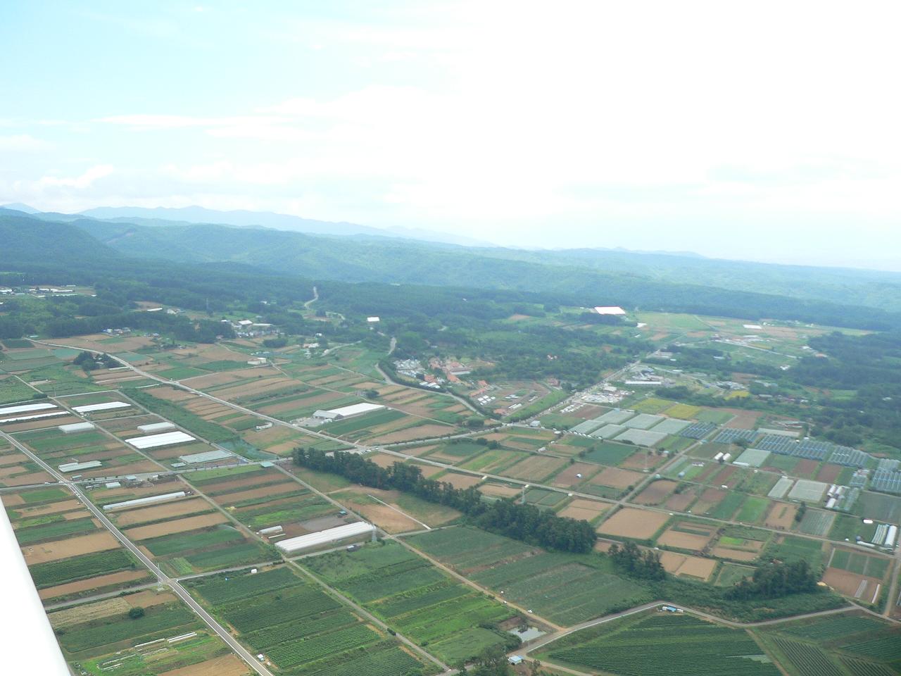 写真は、計器高度3000ft茅ケ岳の西麓に広がる明野村(北杜市)その名の通り日本一の日照時間を誇る。中央にひまわり畑で有名なフラワーパークが見える。