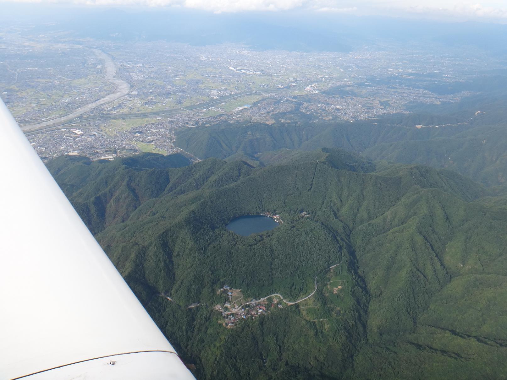 こんな山上に有ること自体が不思議な四尾連湖(しびれ湖)で、湖畔でキャンプをした思い出を回想しながら教官の操縦で上空から見下ろす贅沢を味わった。