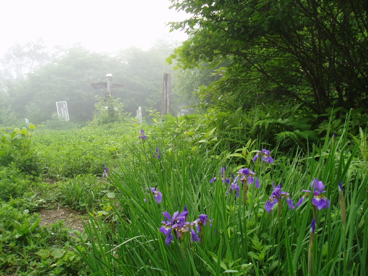 写真は、アヤメが咲く御坂山塊の最高峰、黒岳(1792m)の頂上にて、